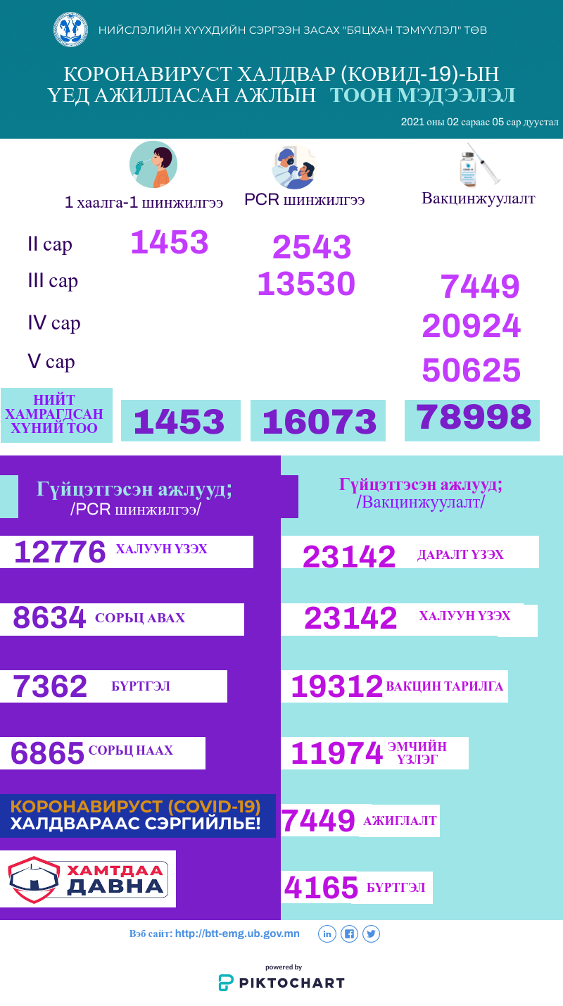 Коронавируст халдвар (Ковид-19)-ын үед ажилласан ажлын тоон мэдээлэлДэлгэрэнгүй
